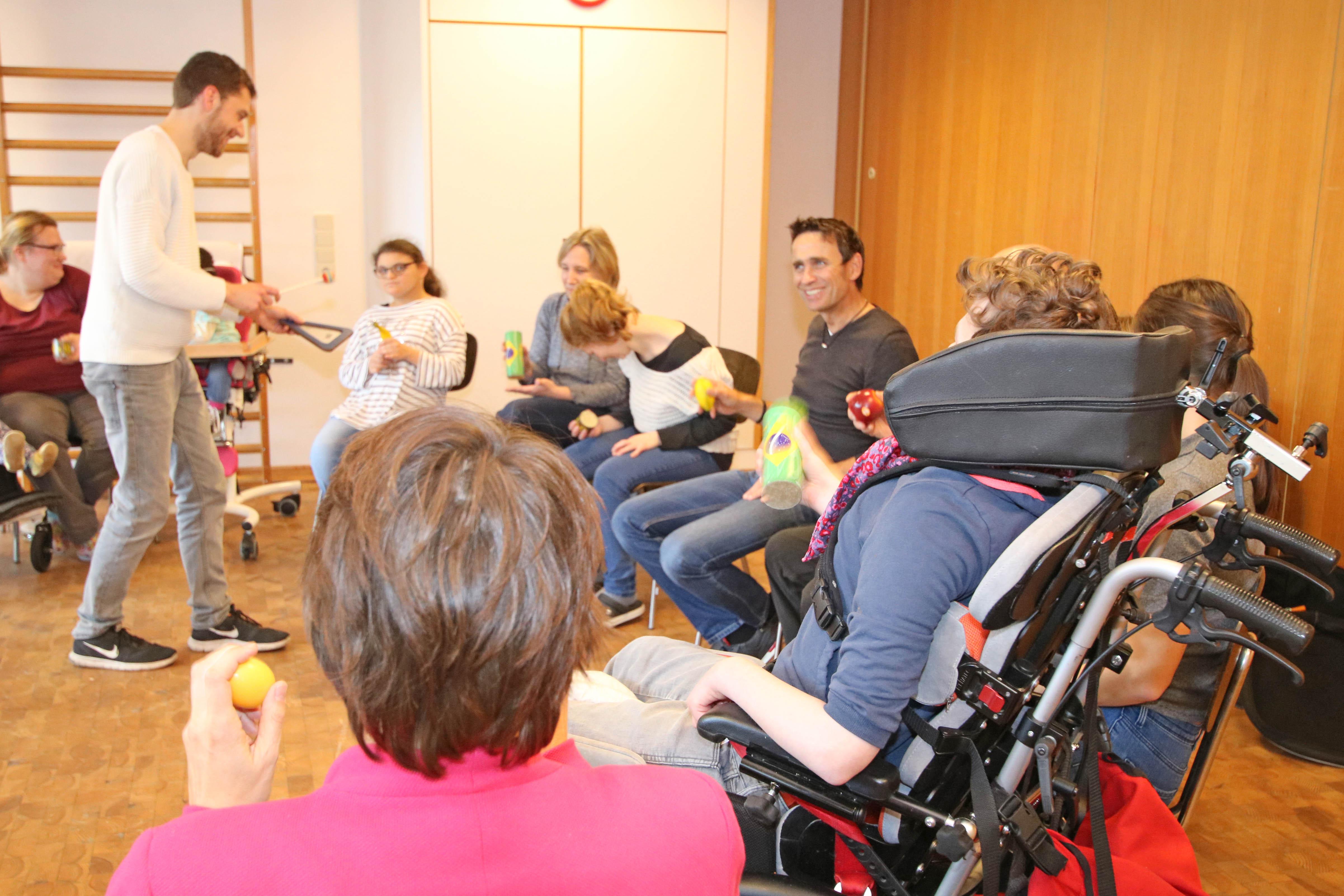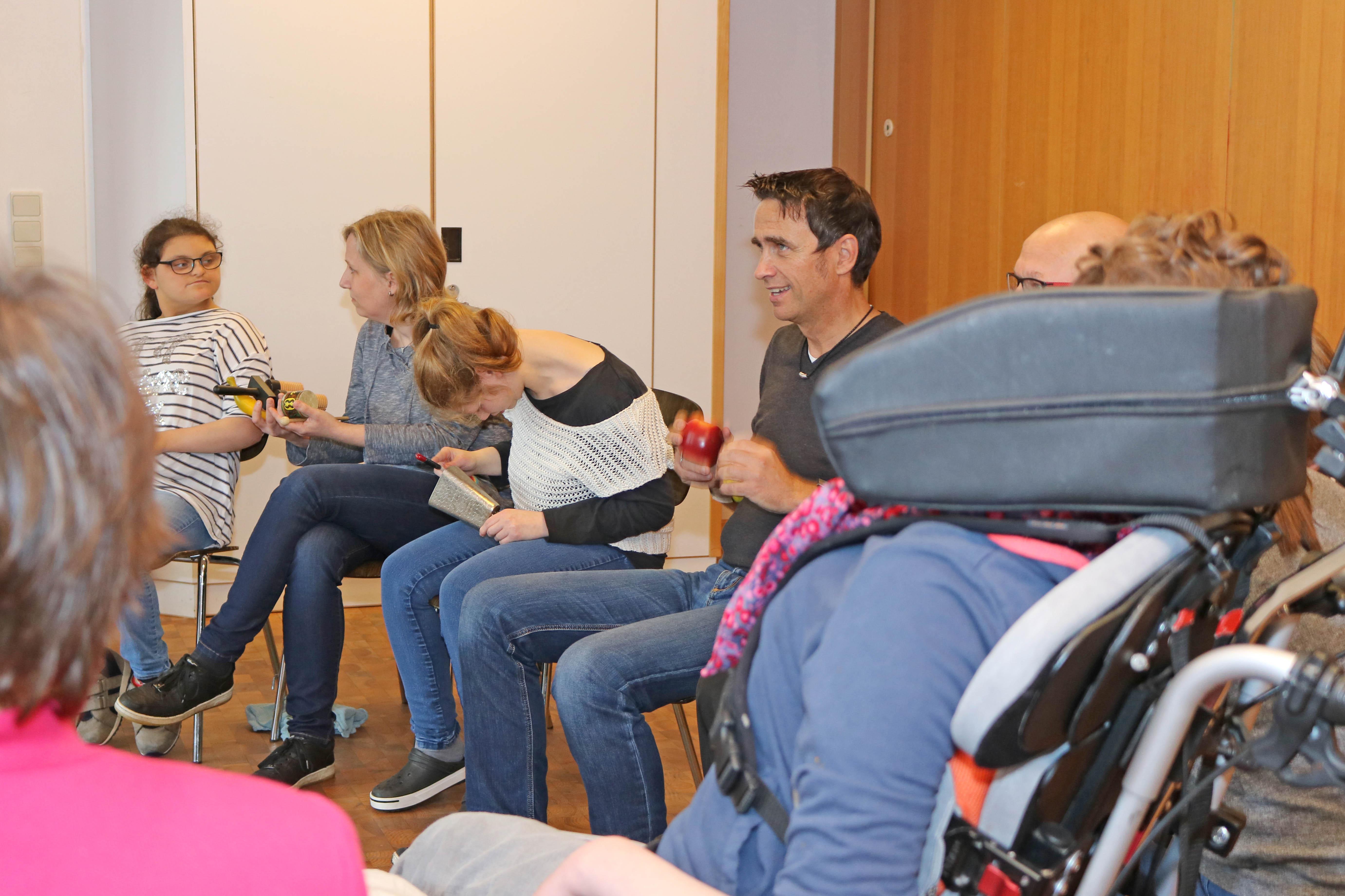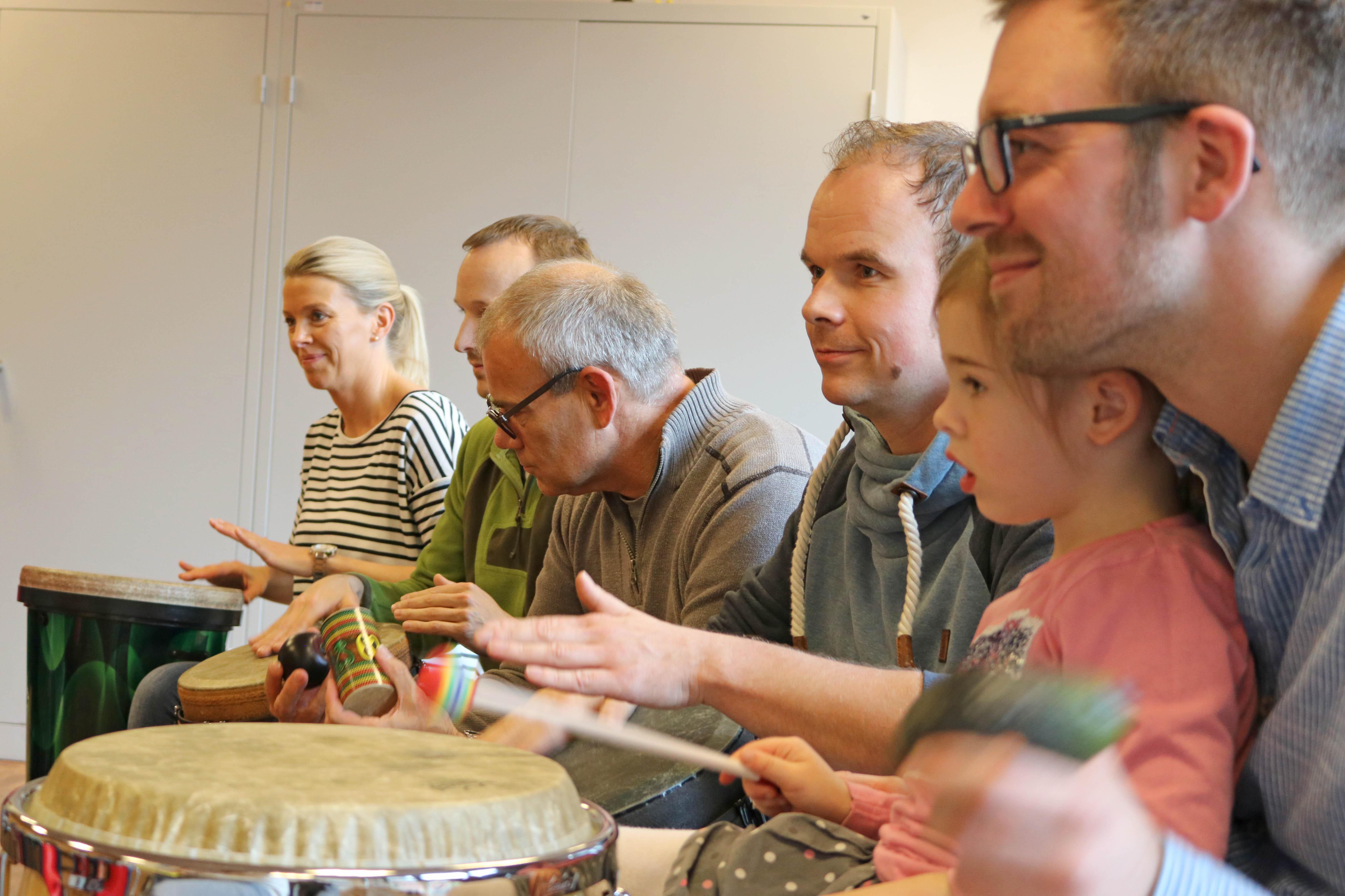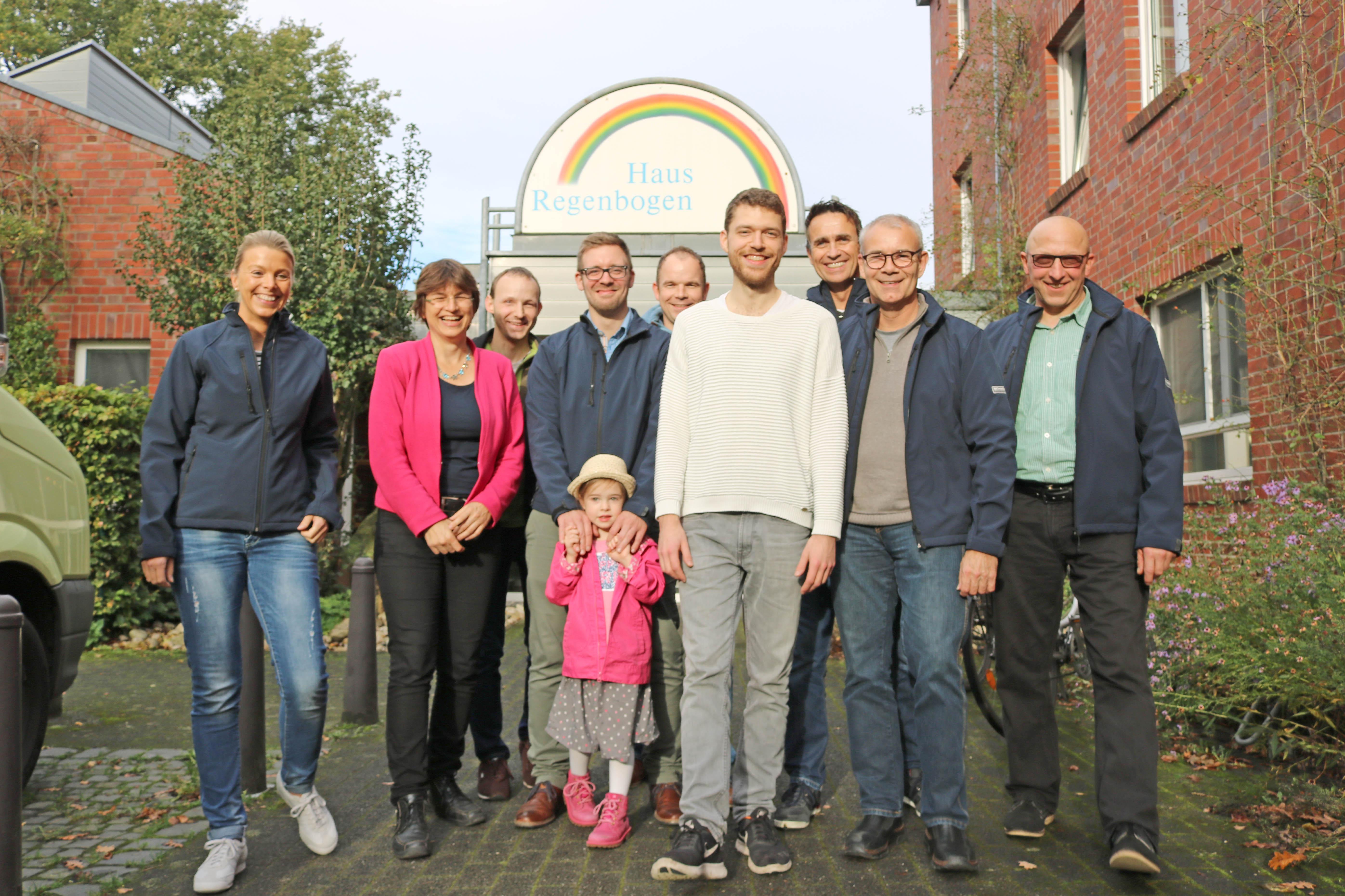 Oldenburg, 03.11.2017 - Sonst sind sie Stahlbauschlosser, Programmierer, Fertigungsleiter, arbeiten im Büro oder an riesigen Maschinen. Heute sind sie zusammen mit ihrem Chef, Dirk Schade, von Wildeshausen nach Oldenburg gekommen, um den Regenbogenkindern eine Spende zu überbringen: 3000 Euro haben Sie im Gepäck. Davon sollen Spielgeräte für die Kinder und Jugendlichen mit Behinderungen gekauft werden und Trommelworkshops organisiert werden. Denn Einrichtungsleiterin Ute Dorczok hatte Dirk Schade berichtet, dass viele Kinder und Jugendliche sehr empfänglich für die Rhythmen und Klänge von Percussion-Instrumenten sind. Unter der Anleitung von Pop-Kantor Steffen Schöps verwandelte sich die Spendenübergabe zur großen Freude der Kinder aus Haus Regenbogen in einen unüberhörbaren Trommelnachmittag. Zum sonoren Klang der tiefen Trommeln spielten die Teilnehmer auf Bongos, Rasseln und anderen Percussioninstrumenten. So haben Dirk Schade und seine Mitarbeiter selbst gesehen, wie Ihre Weihnachtsspende im Haus Regenbogen verwendet wird.