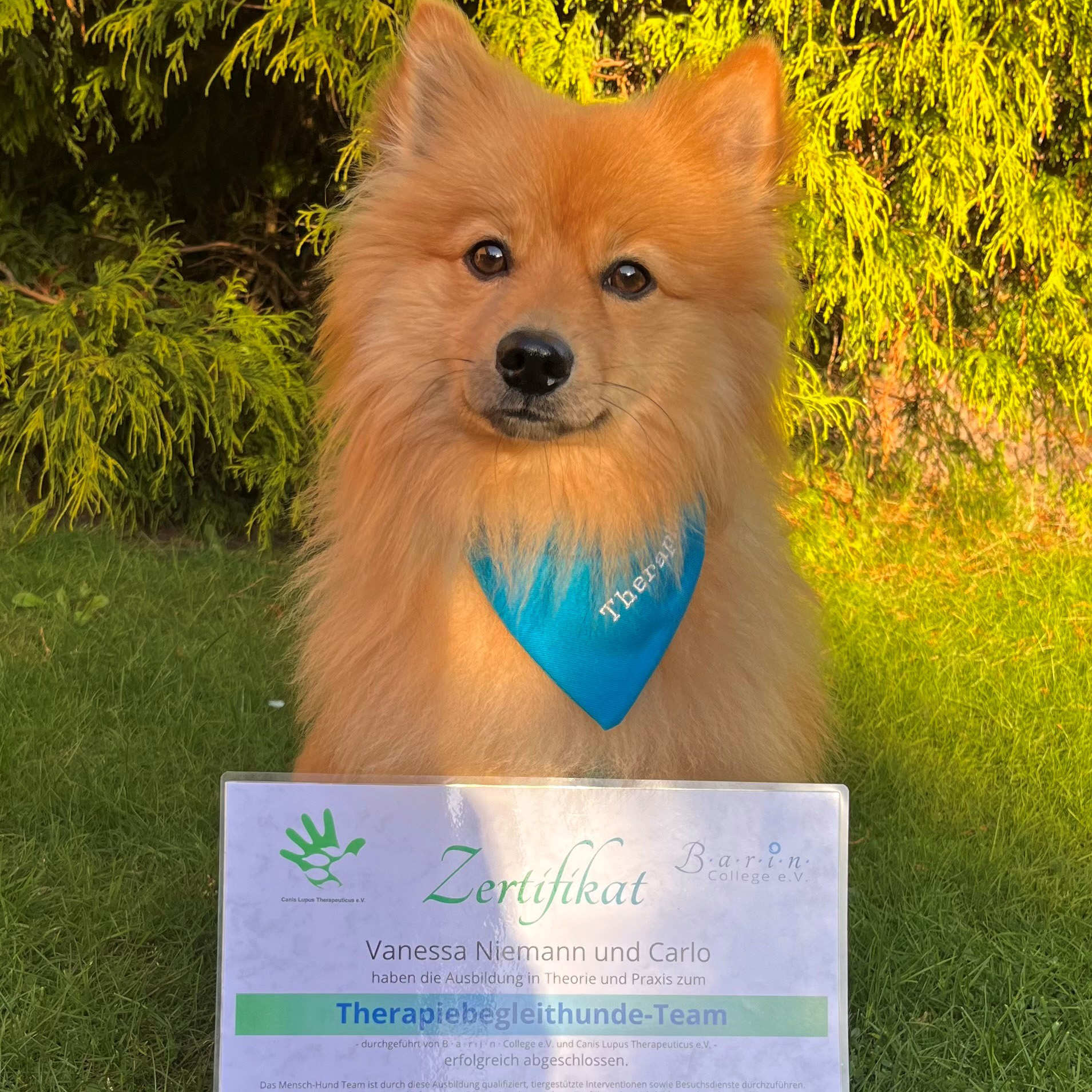 Wildeshausen, 30.10.24 – Tierische Verstärkung hat das Team der Tagesgruppe in Wildeshausen der Diakonisches Werk Oldenburg Jugendhilfe gemeinnützigen GmbH schon etwas länger, nun hat Carlo auch offiziell seine Therapiehund Ausbildung bestanden. Vanessa Niemann, pädagogische Mitarbeiterin bei der Jugendhilfe Collstede, hat den Mittelspitz zum Therapiehund ausgebildet. Das Team und die Kinder freuen sich sehr, dass Carlo als zertifizierter Therapiehund in der Gruppe tätig ist.