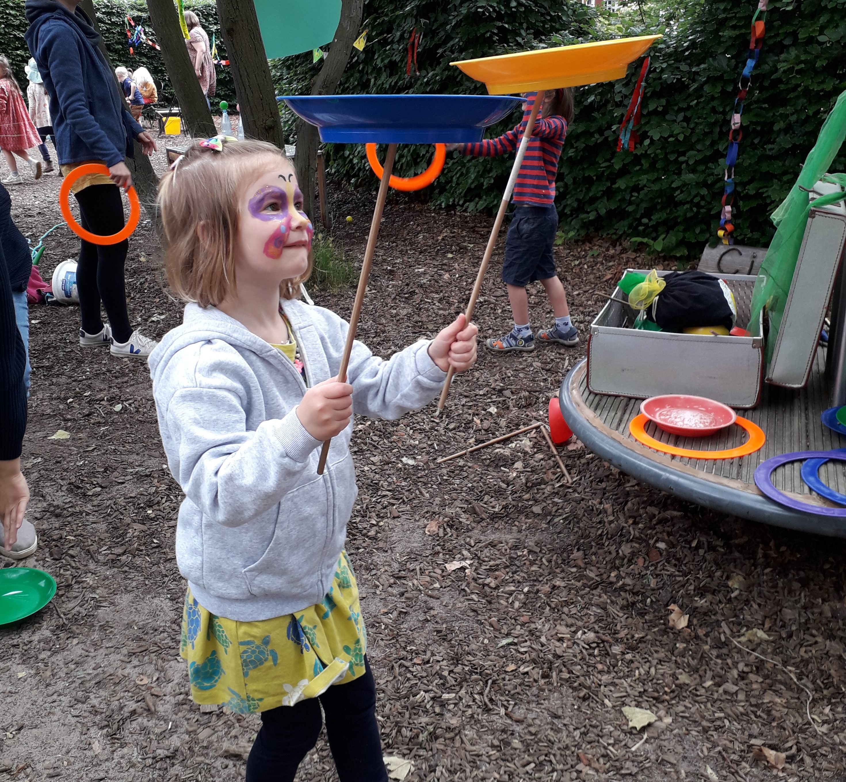 Viel auszuprobieren gab es auf dem Sommerfest der Diakonie Kindertagesstätte Philosophenweg beim Mitmachzirkus. Hier konnten sich Große und Kleine erproben und mit Spaß Erfolge feiern. Angeleitet wurden Sie durch Jaro Birkigt, dem Circuspädagogen „Der mit Hut“.